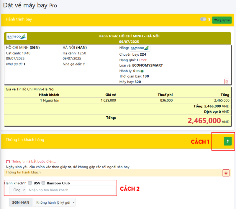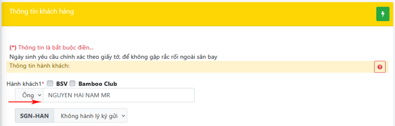 👉 Ưu tiên tuyệt đối CÁCH 1 khi nhập tên hành khách.