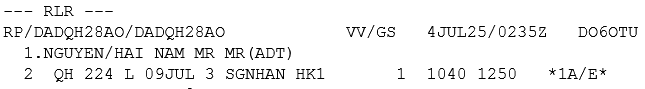 → Kết quả hệ thống trả về: NGUYEN/HAI NAM MR